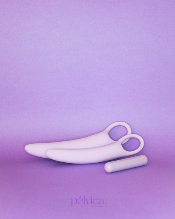 2 dilatadores vaginais, com tamanhos diferentes para dilatação gradual.